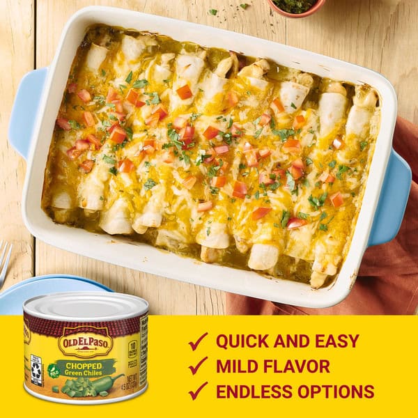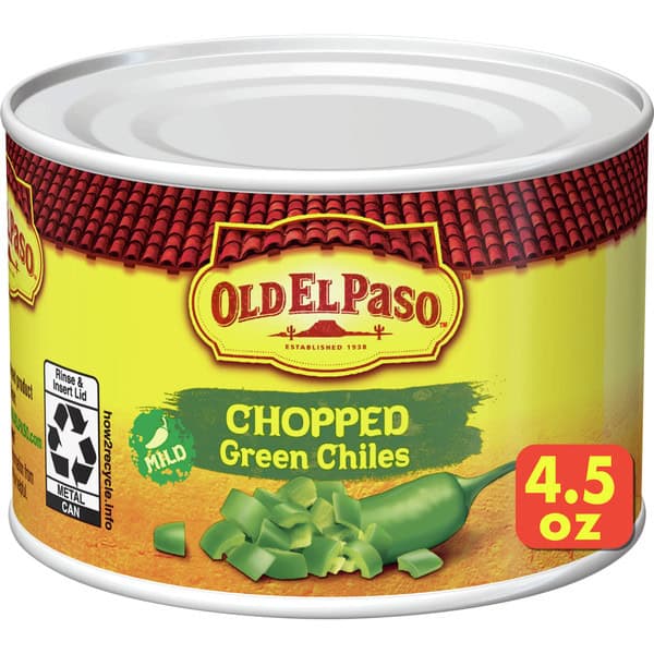 Spice up any dish with Old El Paso Mild Chopped Green Chiles. When you need the perfect topping for tacos, nachos, burritos and more, these diced green chiles are ready to go. You can even mix them into soups, dips and casseroles for some mild Mexican flavor.