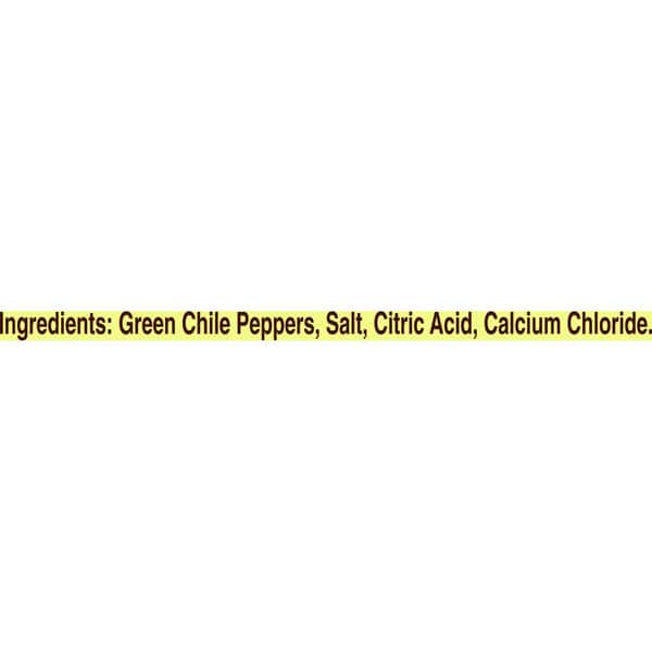 Green Chile Peppers, Salt, Citric Acid, Calcium Chloride.