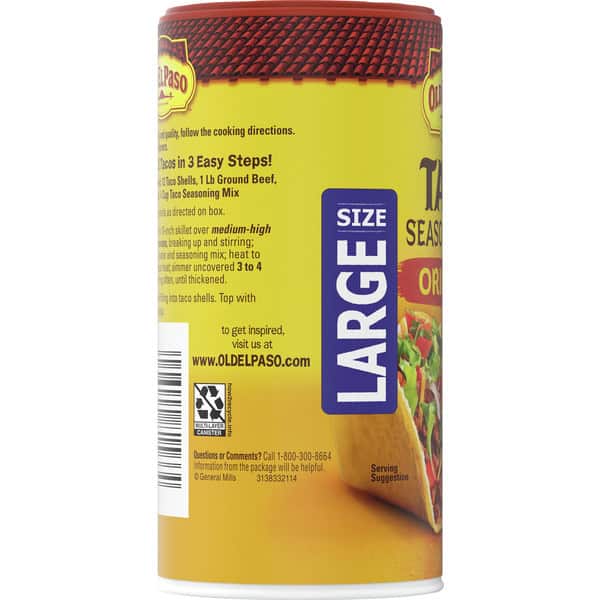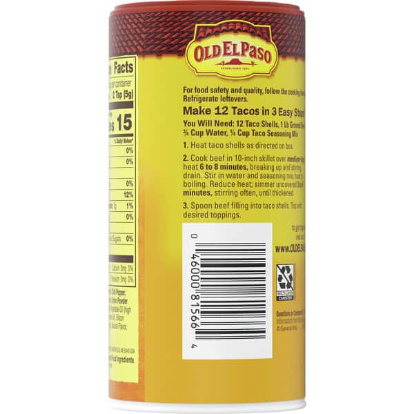 When you stock your pantry with a large container of Old El Paso Original Taco Seasoning Mix, you’re ready to celebrate taco night, every night. These great-tasting taco spices and seasonings help you get tacos on the table. Plus, you can use this seasoning to add bold flavor to meats, soups, dips and more.