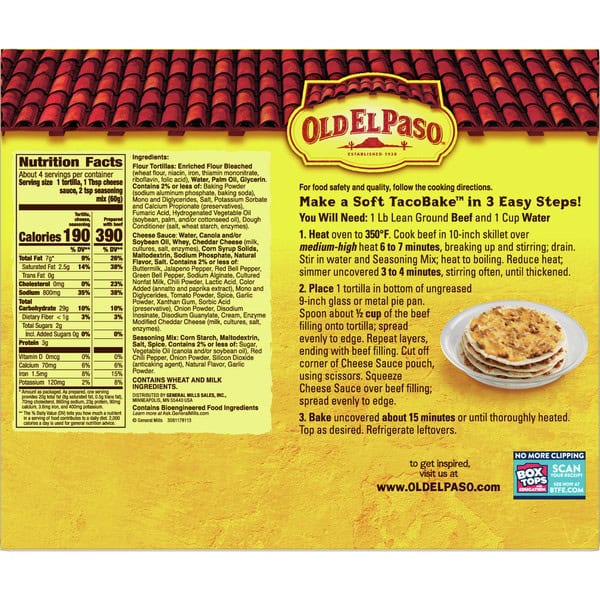 • Box Tops For Education Participating Product: Give back to schools with Old El Paso – Download the Box Tops App to learn more & start earning cash for schools in need today