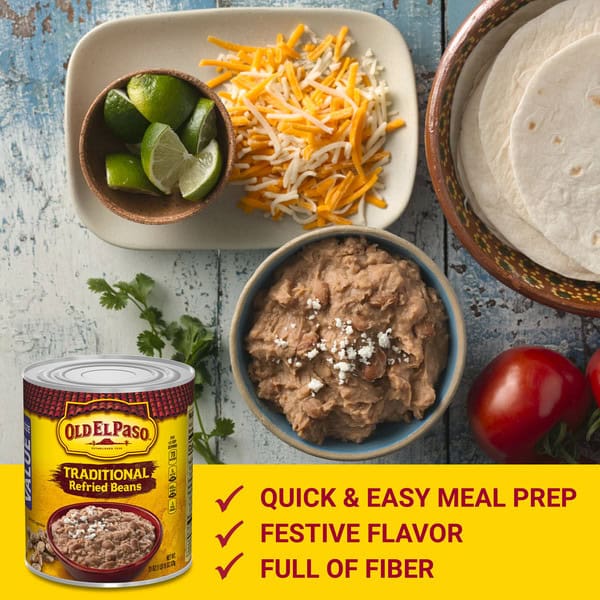 • QUICK & EASY MEAL PREP: Old El Paso beans warm quickly in three minutes in the microwave or on the stovetop