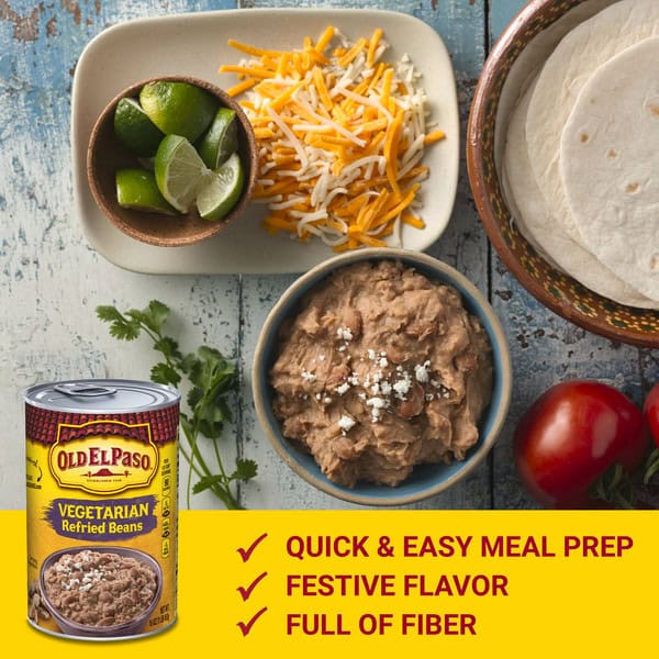 Old El Paso ready-to-use vegetarian refried beans are packed with flavor and quick to prepare. Made with the perfect blend of spices, these zesty refried beans are hearty and delicious and totally vegetarian. Prepare in just minutes on the stovetop or in the microwave and serve something the whole family will enjoy! Serve them as a tasty side on taco night or any night. Or, add them to entrees like enchiladas, burritos and more. Old El Paso has been serving up smiles at gatherings for generations. Our lineup of flavorful and convenient products helps you bring your family So. Many. Pasobilities.