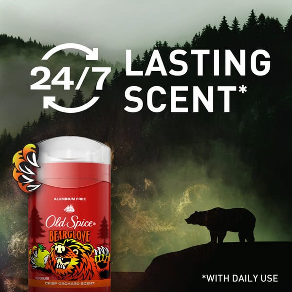• LEGENDARY FRAGRANCE: Old Spice Wild Collection brings you 24/7 Legendary Scents – Bearglove deodorant features a crisp orchard scent