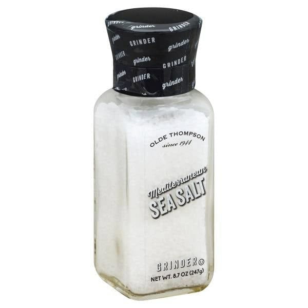Since 1944. Mediterranean Sea Salt Grinder: Harvested from the clear waters of the Mediterranean Sea, this pure and natural sea salt with bright white crystals contains no additives. www.oldethompson.com. Packed in the USA. Salt is a product of France.
