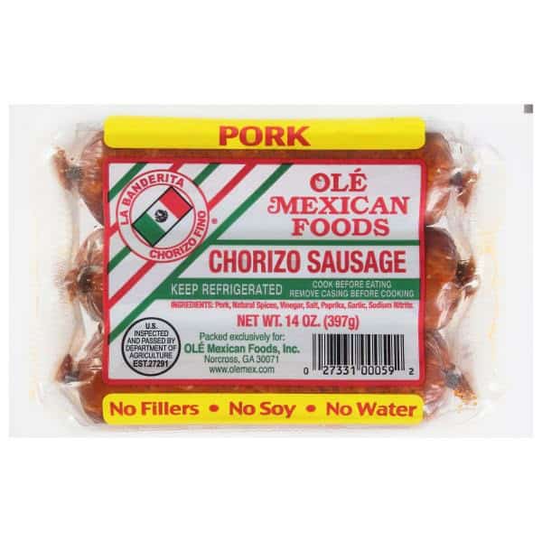 Cook before eating. Remove casing before cooking. Cooking Directions: 1. Remove casing from chorizo and place desired amount in frying pan. 2. Break up chorizo. While cooking at medium heat (approx. 275 degrees F) for 7-8 minutes, occasionally stirring. 3. Cook until done. Minimum internal meat temperature of 160 degrees F. 4. Carefully elevate one side of the pan to allow drainage, remove cooked chorizo.