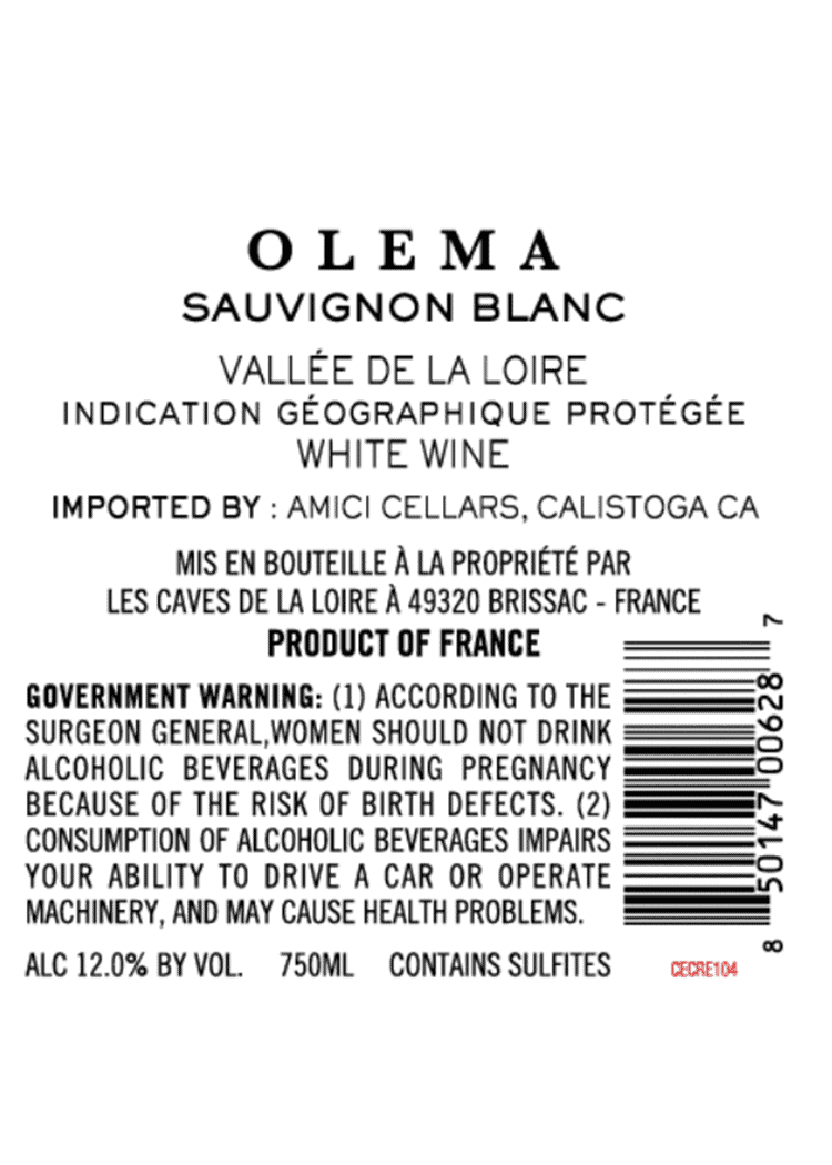 James Suckling-Loire Valley, France- “Olema has give us a fresh and crisp Sauvignon Blanc with lemon, green-apple and chalk aromas and flavors. Clean, fresh and bright. Drink now. Screw cap.”