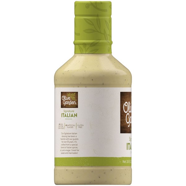 • FAMOUS SIGNATURE ITALIAN DRESSING: Crafted with Italian spices, oil and vinegar, our gluten-free Olive Garden Italian Dressing delivers classic Italian taste and contains no high fructose corn syrup or artificial flavors