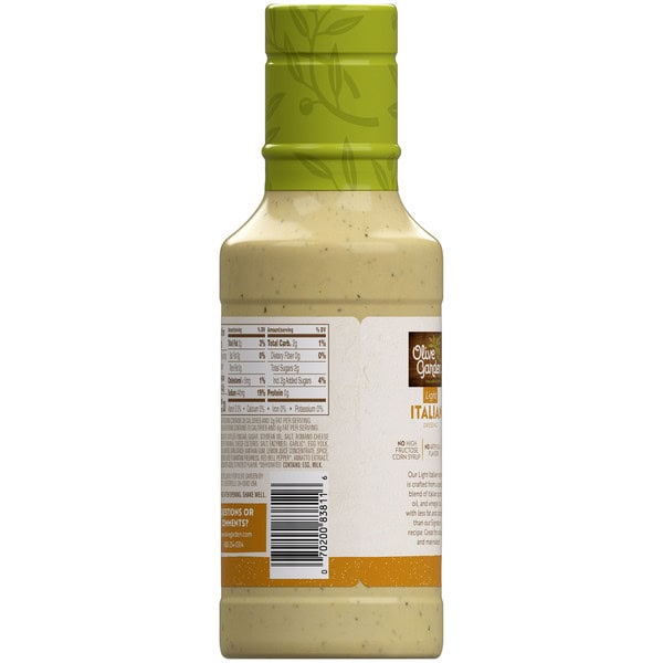 • SIGNATURE ITALIAN FLAVOR: Crafted with Italian spices, oil and vinegar, our gluten-free Olive Garden Light Italian Dressing delivers classic Italian taste and contains no high fructose corn syrup or artificial flavors