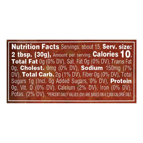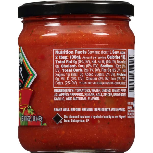 Tomatoes, Water, Onions, Tomato Paste, Jalapeno Peppers, Sugar, Salt, Spices, Dehydrated Garlic, And Natural Flavors.