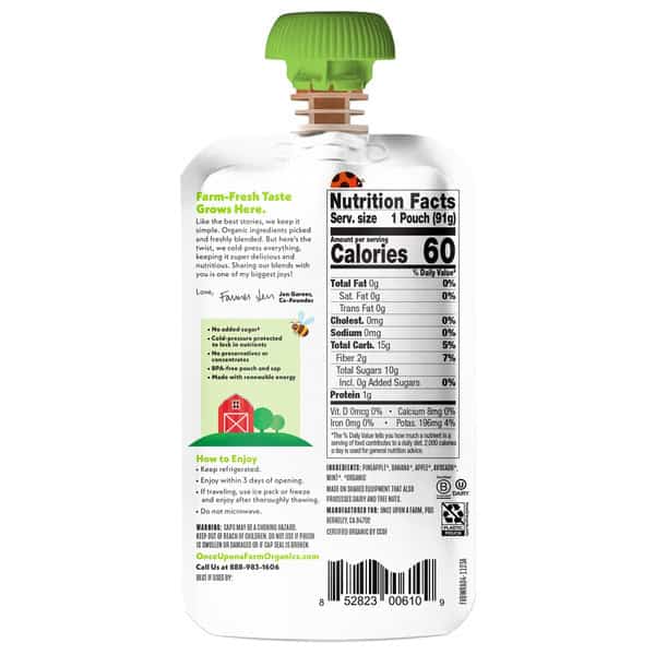 Somewhere in that elusive in-between of sneaking veggies into meals and kids craving kale for dessert are our signature fruit & veggie blends. Farm-fresh produce and no added sugar‡ deliver, clean nutrition in a wide variety of colors, flavors and textures, all in easy and convenient pouch. So fresh, you’ll swear you harvested them yourself. ‡Not a low calorie food.