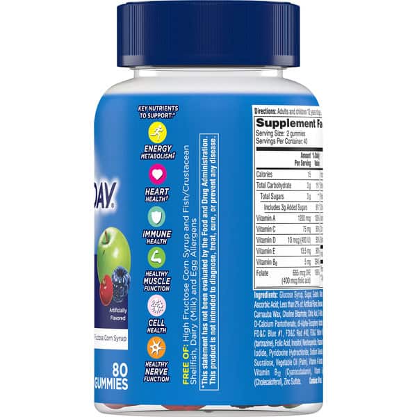Nutritional support for 6 key vital functions. No high fructose corn syrup. Key Nutrients to Support: Energy metabolism (Helps convert food to fuel with vitamins B5, B6, b12 and biotin). Heart health (Not a replacement for heart medications). Immune health. Healthy muscle function. Cell health. Healthy nerve function.