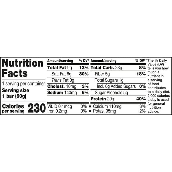 • A gluten free protein bar with 20 grams of protein and 1 gram of sugar