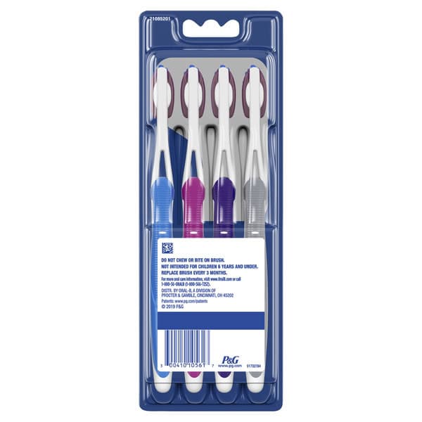 The Oral-B Pro Whitening toothbrush removes 90% of surface stains for a whiter smile. This is due to the toothbrush head and its dual-flexing design combined with a unique Stain Eraser. The dual flexing sides are able to adapt to each of your teeth. This toothbrush also features power tip bristles to reach difficult-to-access areas behind back teeth. The Oral-B Pro Whitening toothbrush whitens teeth by removing surface stains including stains in hard-to-reach areas – along your gumline and between your teeth. This medium bristle toothbrush has end-rounded bristles that are gentle on teeth and gums. For the best results, change your toothbrush regularly. A new toothbrush cleans 95% better in hard-to-reach areas*. This pack of Oral-B toothbrushes include different colors of toothbrushes for households with multiple people or stocking up. Oral-B is the #1 Toothbrush Brand Used by Dentists Worldwide. *vs. one 3 months old; research with a flat trim toothbrush