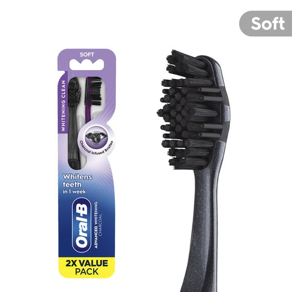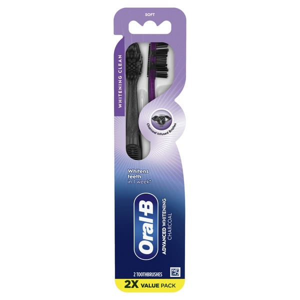 • You will receive (2) Oral-B Advanced Whitening Charcoal toothbrushes with Charcoal infused bristles