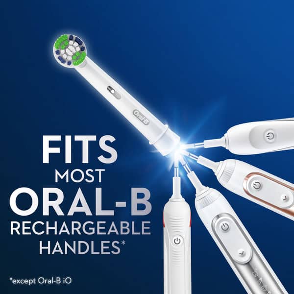 Interchangeable brush head fits Oral-B electric toothbrushes. Does not fit: iO Rechargeable. Signals when to change to maximize your clean. Green bristles turn yellow when it’s time to replace brush head. REPLACE BRUSH HEAD EVERY 3 MONTHS OR SOONER IF BRUSH HEAD BECOMES WORN