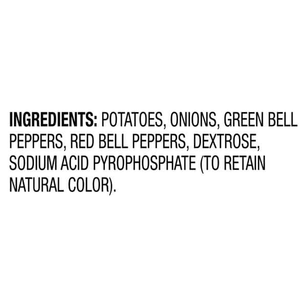 Potatoes, Onions, Green Bell Peppers, Red Bell Peppers, Dextrose, Disodium Dihydrogen Pyrophosphate (to Retain Natural Color).