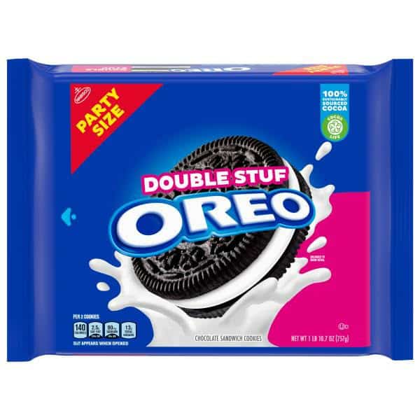 • One 24.95 oz party size pack of OREO Double Stuf Chocolate Sandwich Cookies.