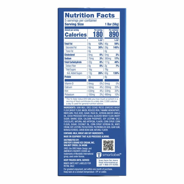 • One 5-count box of OREO Frozen Dairy Dessert Bars