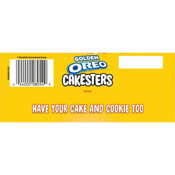 • OREO Cakesters creme filling sandwiched between two soft-baked golden yellow cakes.