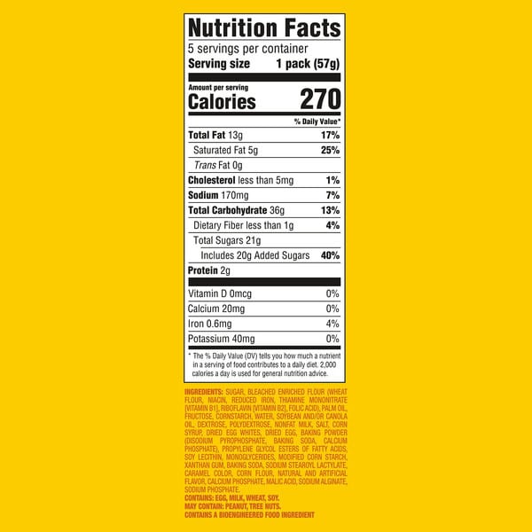 Sugar, Bleached Enriched Flour (wheat Flour, Niacin, Reduced Iron, Thiamine Mononitrate [vitamin B1], Riboflavin [vitamin B2], Folic Acid), Palm Oil, Fructose, Cornstarch, Water, Soybean And/or Canola Oil, Dextrose, Polydextrose, Nonfat Milk, Salt, Corn Syrup, Dried Egg Whites, Dried Egg, Baking Powder Disodium Pyrophosphate, Baking Soda, Calcium Phosphate), Propylene Glycol Esters Of Fatty Acids, Soy Lecithin, Monoglycerides, Modified Corn Starch, Xanthan Gum, Baking Soda, Sodium Stearoyl Lactylate, Caramel Color, Corn Flour, Natural And Artificial Flavor, Calcium Phosphate, Malic Acid, Sodium Alginate, Sodium Phosphate.