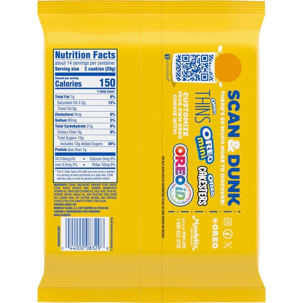 Take a delicious break with OREO Lemon Creme Sandwich Cookies, a citrus twist on America’s favorite sandwich cookie. Supremely dunkable, these delicious OREO cookies feature lemon-flavored creme filling between two crispy vanilla sandwich cookies. Tasty lunchbox snacks for loved ones, OREO Lemon Creme cookies also are great for enjoying on your own with a glass of milk or bowl of ice cream. These certified kosher snack food cookies are wonderful office snacks and after-school snacks for kids and adults. The resealable package with easy-pull tab keeps these lemony Golden OREO snack cookies fresh.