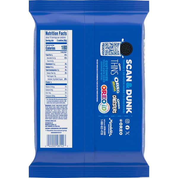 • OREO sandwich cookies that are especially delicious with a glass of cold milk and great for serving as birthday party snacks.