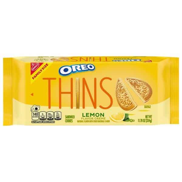 • One 11.78 oz family size pack OREO Thins Lemon Creme Sandwich Cookies.