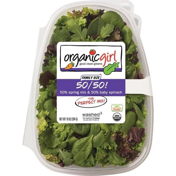 50% spring mix and 50% baby spinach – this blend creates the perfect mix!