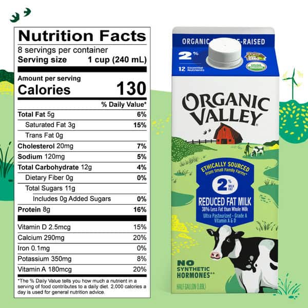 • Half gallon (64 oz) of organic 2% milk