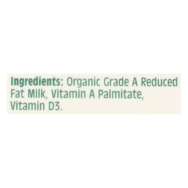 Organic Grade A Reduced Fat Milk, Vitamin A Palmitate, Vitamin D3.
