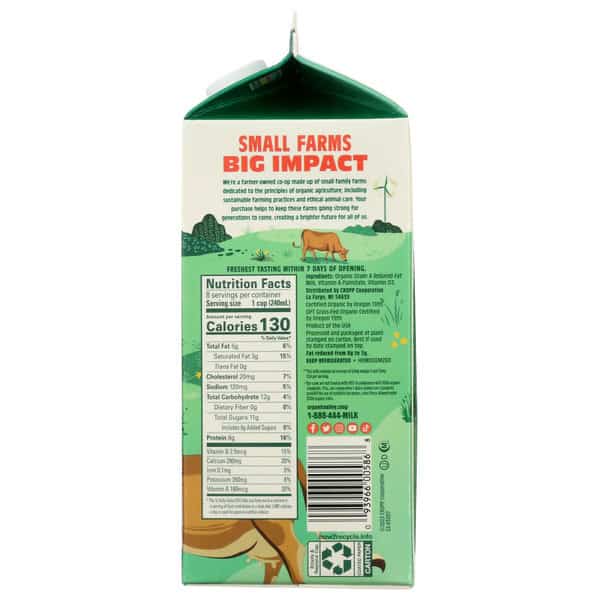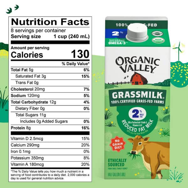 • Half gallon (64 oz) of organic 2% milk from 100% grass-fed cows