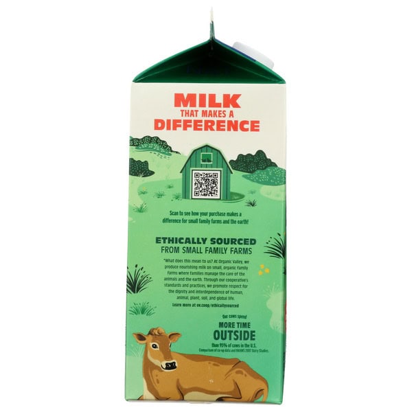 • Organic Valley® milk comes from small family farms, where cows roam and graze on lush organic pastures