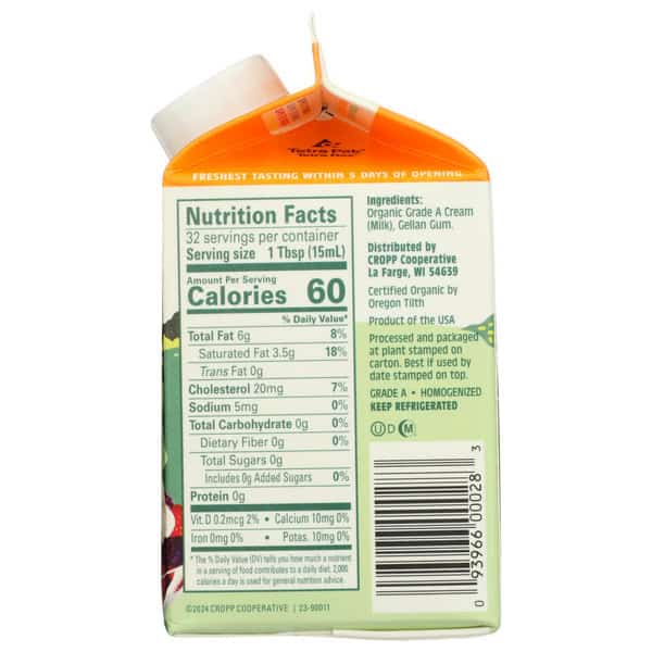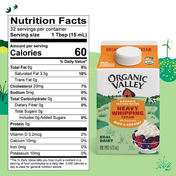 • Organic Valley® heavy whipping cream contains a minimum of 36% butterfat for ultra creamy indulgence