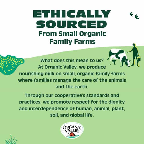 • From small family farms, where cows roam outside on lush organic pastures, giving you rich flavor and smooth texture