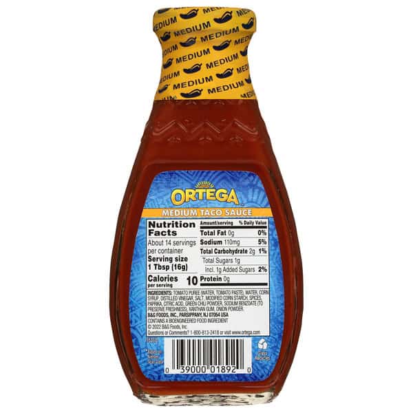 • One 8 ounce bottle of Ortega Original Thick and Smooth Medium Taco Sauce