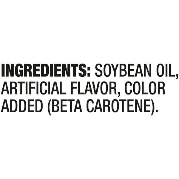 Soybean Oil, Artificial Flavor, Color Added (beta Carotene).