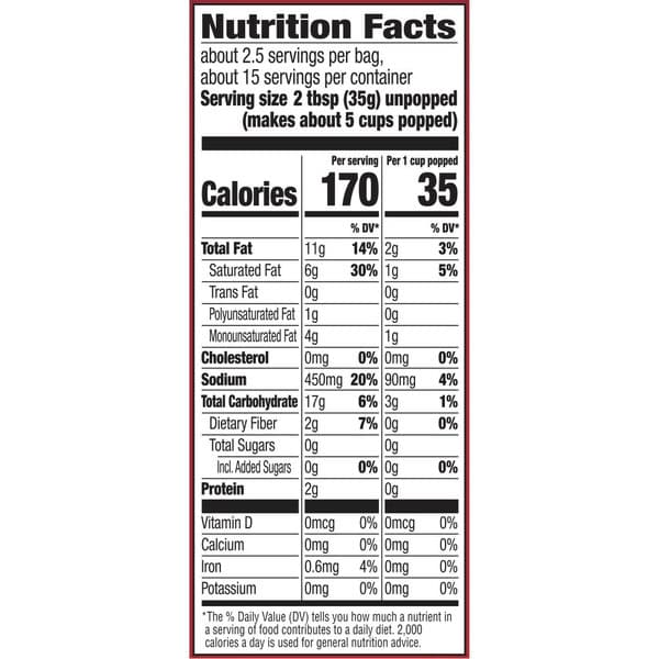 Whole Grain Popping Corn, Palm Oil, Salt, Natural Flavors (including Milk), Color Added (annatto), Mixed Tocopherols (vitamin E For Freshness)