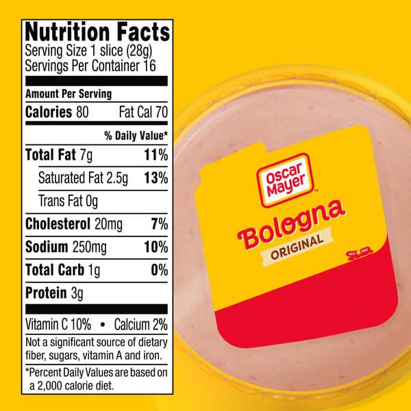 • Contains 80 calories per serving of Oscar Mayer Bologna Deli Meat