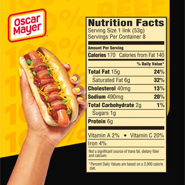 Beef up your next meal with Oscar Mayer Bun-Length Beef Franks. Our bun-length hot dogs are made with no fillers or by-products, so you can enjoy the great taste and quality you expect. Meat used is 100% beef, creating a thick and juicy hot dog that fits perfectly in your bun of choice so you can relish every bite. Grill our hot dogs for a family BBQ, roast over a campfire or cook in the kitchen for a quick and easy meal. Top your hot dog with ketchup and mustard, or try regional favorites like chili or sauerkraut. Each 8-count pack of hot dogs comes in a 15-ounce pack with an EZ peel tape. Keep refrigerated until ready to prepare.