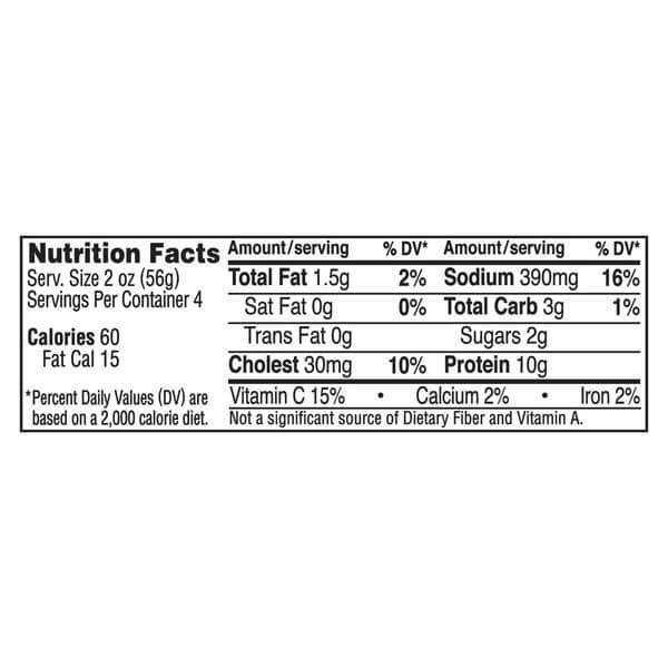 • Contains 27% less sodium than USDA data for cooked smoked honey ham