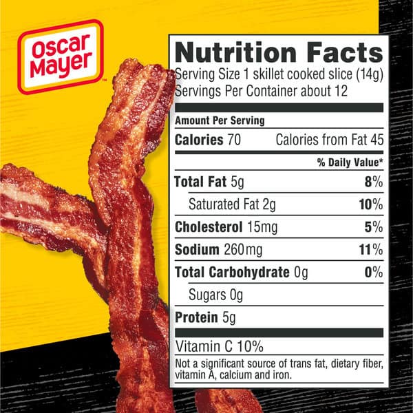 Everything is better with bacon. Oscar Mayer Naturally Hardwood Smoked Thick Cut Bacon Slices are hand-trimmed for delicious flavor and hearty texture. Carefully selected cuts of pork are used to make our delicious thick cut bacon. Each bacon slice is slow smoked with real wood, making it a tasty addition to breakfast sandwiches and BLTs alike. Fry a few slices for bacon and eggs, or chop it up and add thick cut smoked bacon to any of your favorite dishes. Crumble a slice into bacon bits or try pairing with a breakfast sausage in the morning. Keep our 16-ounce vacuum sealed package with about 12 slices of bacon refrigerated and use within seven days once opened.