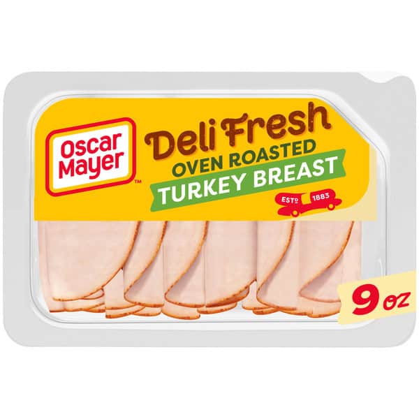 • One 9 oz. plastic tray of Oscar Mayer Deli Fresh Oven Roasted Turkey Breast Sliced Lunch Meat