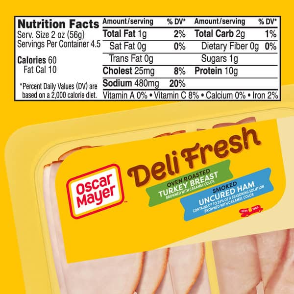 • Oscar Mayer Deli Fresh Oven Roasted Turkey Breast and Smoked Uncured Ham Sliced Lunch Meat are made with quality meat