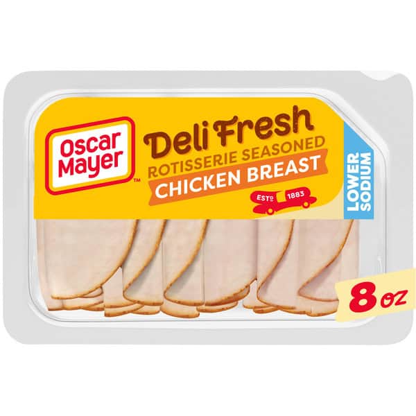 • One 8 oz tray of Oscar Mayer Deli Fresh Rotisserie Seasoned Chicken Breast Coated with Paprika, Spices and Flavors Sliced Lunch Meat with 25% Lower Sodium than USDA data for seasoned rotisserie chicken breast