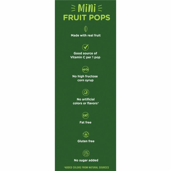 • Delicious black cherry, strawberry kiwi, and mixed berry mini fruit pops are a good source of vitamin C