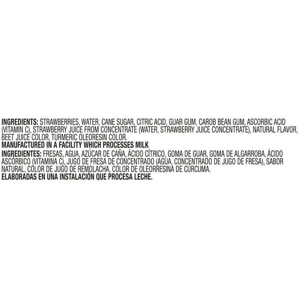 Strawberries, Water, Cane Sugar, Citric Acid, Guar Gum, Carob Bean Gum, Ascorbic Acid (vitamin C), Strawberry Juice From Concentrate (water, Strawberry Juice Concentrate), Natural Flavor, Beet Juice Color, Turmeric Oleoresin Color