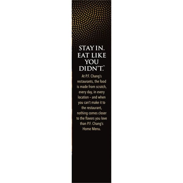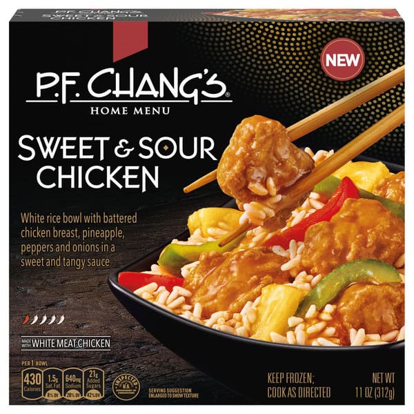 Enjoy delicious restaurant-style flavors in the convenience of your own home with P.F. Chang’s Home Menu Sweet and Sour Chicken. Savor the taste of a restaurant-inspired white rice bowl with tempura-battered chicken breast, pineapple, peppers and onions in a sweet and tangy sauce. You don’t have to leave your house to enjoy an easy meal with little effort. This mouthwatering chicken dish is quick and easy to warm in the microwave and contains no preservatives and no artificial flavors or colors. Serve your frozen meal with other Asian dishes and bring the taste of your favorite Asian-inspired restaurant to your kitchen table with P.F. Chang’s Home Menu frozen foods. Stay in. Eat like you didn’t.