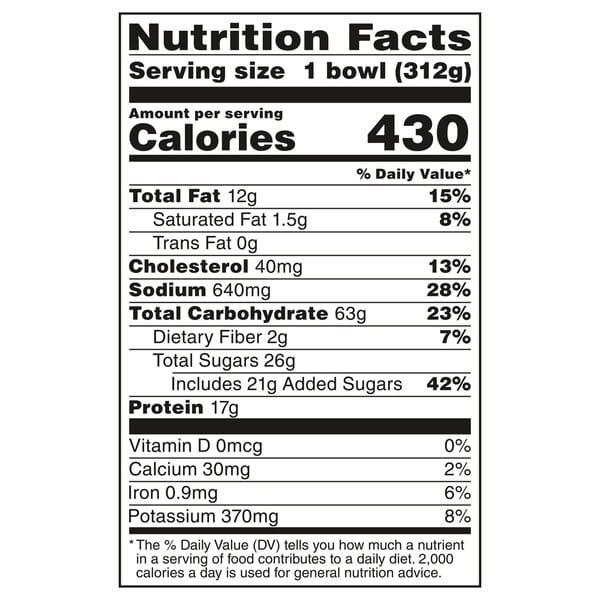 Microwave: Cook only one at a time. Do not cook in conventional or toaster ovens. 1. Microwave on high 2-1/2 minutes. No need to vent film. 2. Stir and replace film. Careful, it’s hot! microwave an additional 1- 1/2 to 2 minutes. 3. Check that food is cooked thoroughly to 165 degrees F. Chef Tip: Add hot sauce for a delightful kick! For Food Safety And Quality: Keep frozen. Do not thaw. Microwave directions developed with 1100-watt microwave ovens. Appliances vary. Adjust heating times as needed. Bowl designed for single use only. Do not re-use.