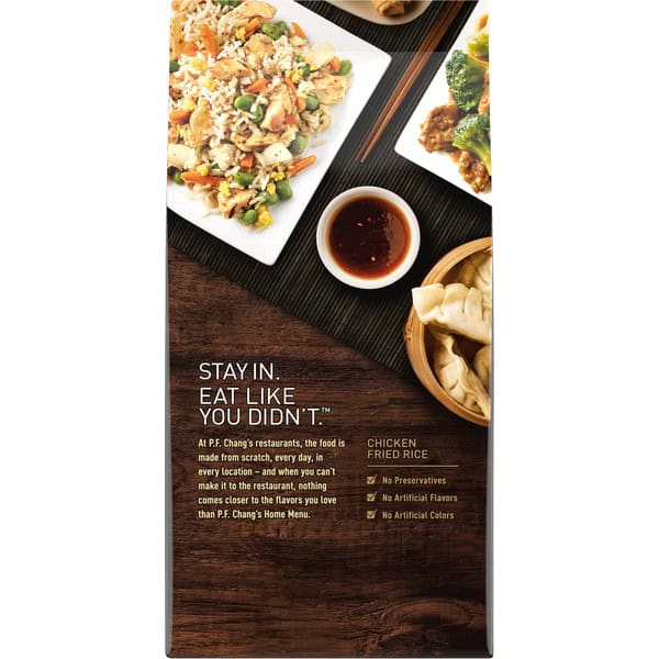 Experience a delicious, restaurant-style dining experience at home with P.F. Chang’s Home Menu Chicken Fried Rice Skillet Meal. Featuring fried rice with white meat chicken, carrots, edamame, onion and egg for frozen meals with authentic Asian food flavor. This frozen meal contains no artificial flavors, colors or preservatives, ensuring delicious and satisfying frozen entrees every time. Ideal for when you’re craving a special family meal, these frozen rice skillet meals provide the gourmet experience of restaurant-quality cuisine in quick frozen meals that can be prepared in the comfort of your home. Simply cook this frozen food on the stove top according to the package instructions for easily prepared meals in minutes. Store this frozen fried rice meal kit in your freezer until you’re ready to enjoy. Stay in. Eat like you didn’t. Far from ordinary, P.F. Chang’s Home Menu creates a gourmet Asian experience in your own kitchen. Simple, fresh ingredients balance one another to bring out all the best flavors—that’s how easy Asian food is done.