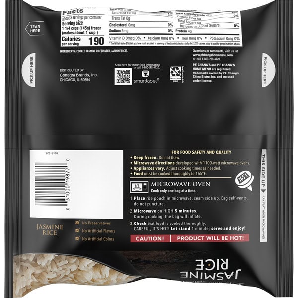 • This frozen jasmine rice contains no preservatives and no artificial flavors or colors